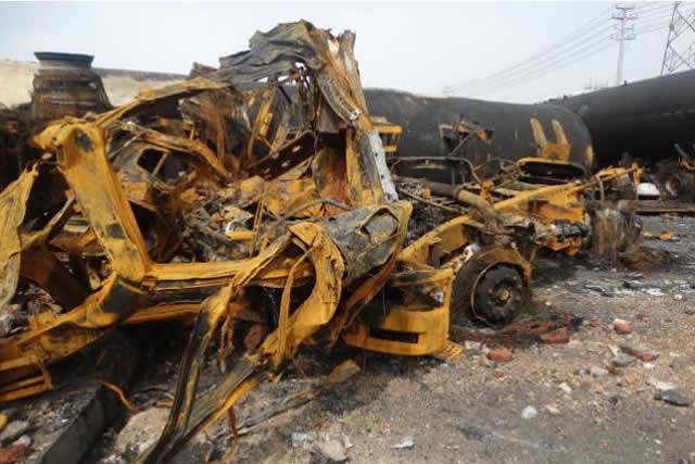 事故中損毀的罐車